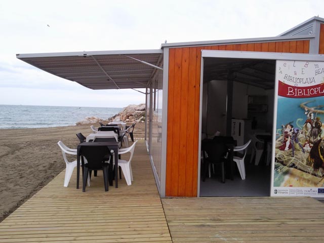 Fué una iniciativa conjunta de las concejalías de Cultura y de Turisme para fomentar la lectura en época estival acercando la biblioteca hasta la misma playa y como aliciente para los turistas que nos visitan que tienen su espacio para leer la prensa diaria, libros, y para participar en todas las actividades que se fueron organizando a lo largo de la temporada, como talleres y otras muchas. Dividida en dos areas, una para niños y otra para adultos, su éxito fue motivo de una de las pocas visitas de una Consellera a Vinaròs, la de Turisme que incluso le concedió una pequeña subvención.